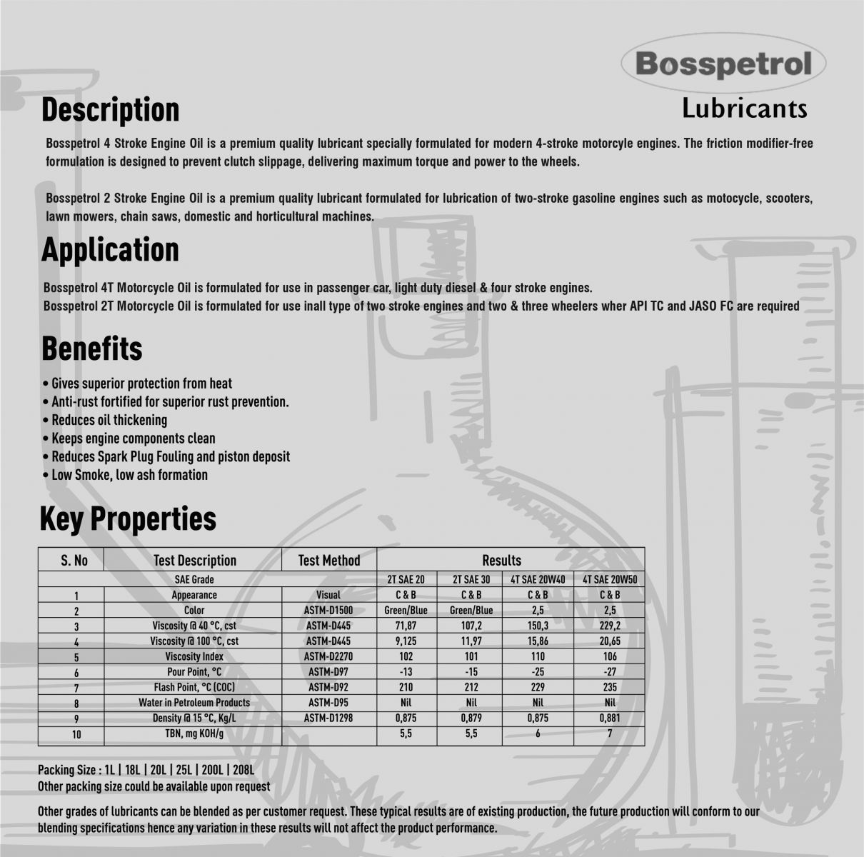Other grades of lubricants can be blended as per customer request. These typical results are of existing productions, the future productions will conform to our blending specifications hence any variation in these results will not affect the product performance.